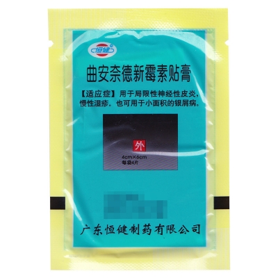 这两种药物的组合主要是用于抗炎和杀菌的功效,在临床中曲安奈德新霉素贴主要是用于局部神经性皮炎、慢性湿疹,另外也可以小面积的用于银屑病。因为药物中含有糖皮质激素,因此长期使用可能会出现类似糖皮质激素导致的皮炎表现,可以表现为多毛、痤疮等。总之药物里面含有激素,含有的激素就是曲安奈德,可以比较有效的治疗神经性皮炎和湿疹,但是不推荐长期的使用。